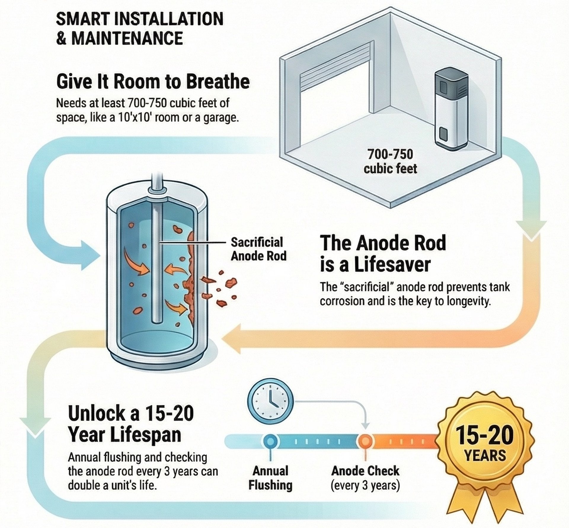 A heat pump water heater should be viewed not as a disposable appliance, but as a long-term investment in your home's infrastructure. While many conventional water heaters are replaced within a decade, a properly maintained HPWH can deliver reliable service for 15 or even 20 years. A lack of basic care is the primary reason for premature failure; as professionals in the field often note, "a typical American is replacing their water heater within a decade because there's no maintenance done." This extended lifespan is achievable through simple, consistent maintenance, centered on protecting the tank from corrosion.